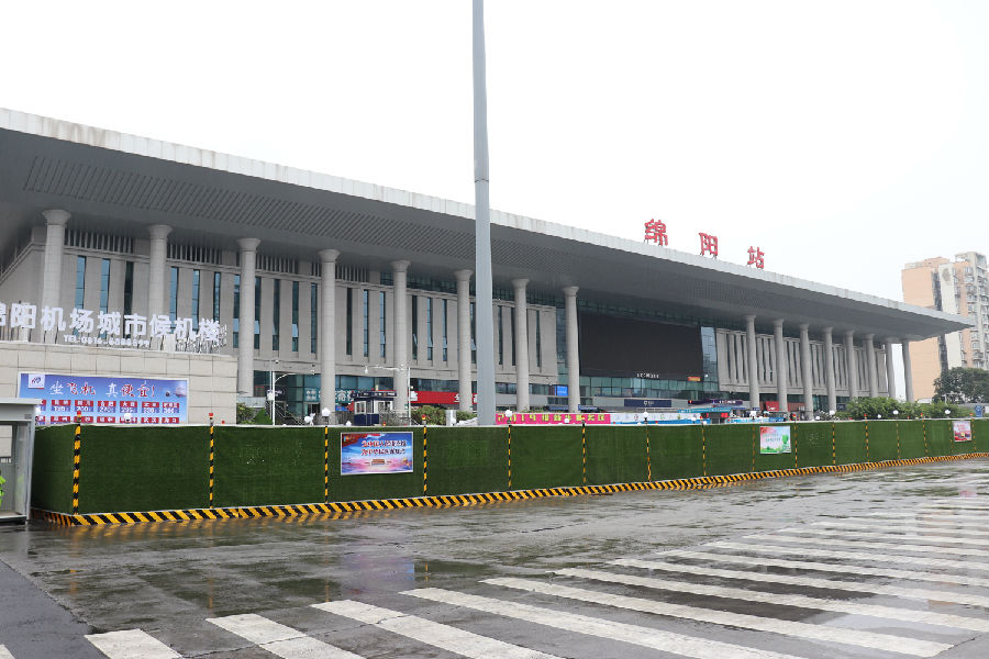 為了更好解決綿陽火車客站出口人流與車輛沖突問題,由于項目地處火車客站,為減少對來往旅客的影響,確保車站周圍交通組織管理有序,恒通建工前期與火車客站、機場、公交、公安、交警、市政、照明等相關單位積極協(xié)調,并在荷花北街往火車客站廣場路口、火車客站出站口醒目位置設置施工公告牌、交通警示及交通導向牌,將公交站臺應急通道用臨時欄桿設置人行專用通道、出租車及私家車專用通道,為項目順利推進做好保障。