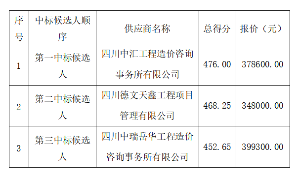 我公司委托四川久安工程管理有限公司代理招標(biāo)的“省道205線綿陽(yáng)繞城段改線建設(shè)工程(游仙區(qū)段)項(xiàng)目結(jié)算復(fù)核審計(jì)服務(wù)”項(xiàng)目(項(xiàng)目編號(hào):四川久安招[2021]7號(hào))于2021年08月19日13時(shí)30分(北京時(shí)間)進(jìn)行公開(kāi)招標(biāo),現(xiàn)對(duì)評(píng)審結(jié)果公示如下: ?