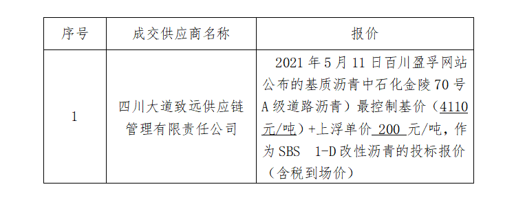 瀝青供應商采購比選結果公告