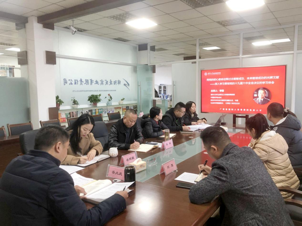 會議組織學(xué)習(xí)《實現(xiàn)中華民族偉大復(fù)興的必由之路--關(guān)于堅持和發(fā)展中國特色社會主義》,及清華大學(xué)馬克思學(xué)院特聘教授李捷老師11月24日晚上直播授課《學(xué)習(xí)貫徹黨的十九屆六中全會精神專題講座》、《警鐘:認(rèn)為自己功勞很大,貪欲就多了》視頻,深入貫徹黨的十九屆六中全會精神。