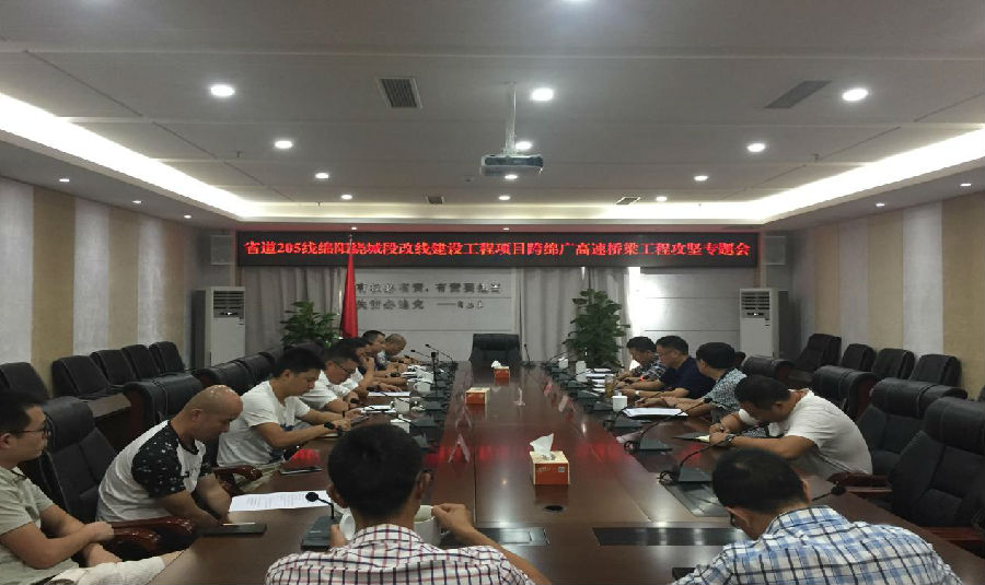 省道205線綿陽(yáng)繞城段改線建設(shè)工程項(xiàng)目指揮部召開(kāi)跨綿廣高速橋梁工程攻堅(jiān)專題會(huì)
