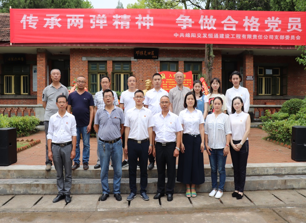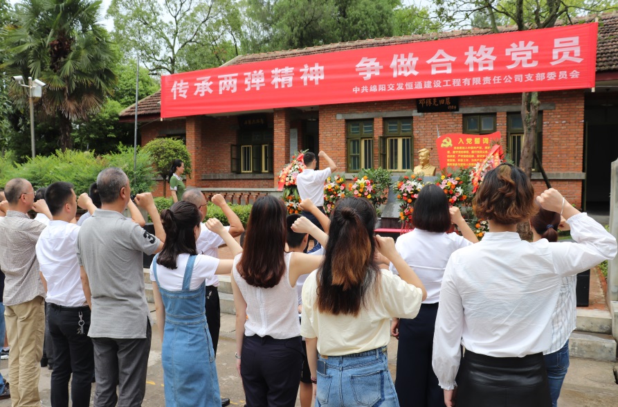 大會在全體人員齊唱《沒有共產(chǎn)黨就沒有新中國》的歌聲中落幕。大會結束后,恒通建工黨支部開展了以“弘揚兩彈精神,爭做合格黨員”為主題的主題黨日活動。在黨支部書記鐘勇的帶領下,全體人員冒雨首先來到公司承建的梓東路項目建設現(xiàn)場,實地查看了項目推進情況?;顒幼詈?,全體人員來到梓潼兩彈城進行參觀學習,重溫革命先輩們艱苦卓絕的奮斗歷史,學習兩彈元勛們無私奉獻的愛國精神。在黨支部書記鐘勇的帶領下,全體成員首先來到我國“兩彈元勛”—鄧稼先銅像前,進行了莊嚴的獻花儀式并重溫入黨誓詞。隨后,全體成員參觀了院士故居、兩彈歷程館和三防教育基地等場館,通過講解員生動詳實的講解,展廳內(nèi)的圖文展示、實物陳列、模擬場景以及視頻資料,讓全體人員重溫了我國發(fā)展兩彈那段波瀾壯闊的歷史。老一輩科學家在研發(fā)過程中凝聚成的“愛國奉獻、艱苦奮斗、協(xié)同攻關、求實創(chuàng)新、勇攀高峰”的兩彈精神,深深地震撼、感動和鼓舞著現(xiàn)場的每個人。