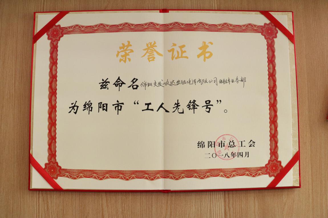 順達(dá)公司出租車業(yè)務(wù)部獲“綿陽市工人先鋒號”榮譽(yù)稱號