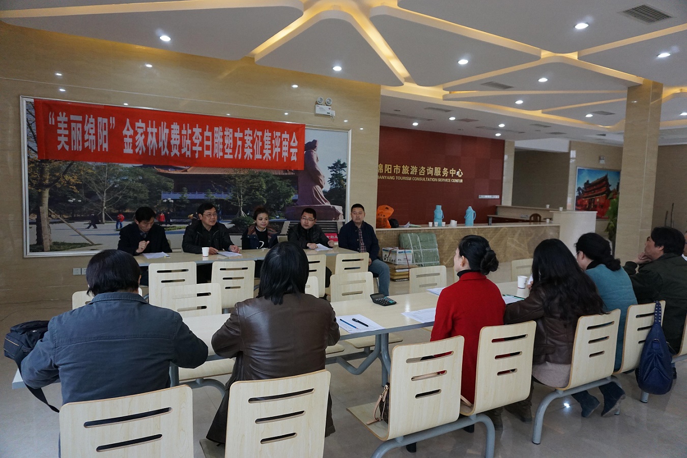 3月11日下午,市文廣新局和交發(fā)集團在綿陽旅游咨詢服務中心,對2016年2月6日公開征集的綿陽(金家林)收費站“李白邀月”意境為主題雕塑進行現場專家評審。評審組首先進行了現場實地踏勘,然后認真對應征方案按照盲樣評審方式進行評審,最后進行了得票統(tǒng)計,并提出了針對性的建議,且進行了方案推薦。