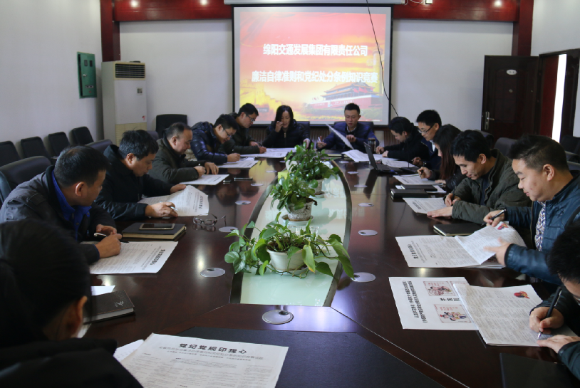 為進(jìn)一步教育和引導(dǎo)集團(tuán)總部黨員干部主動(dòng)學(xué)習(xí)黨章黨規(guī)黨紀(jì),自覺以高標(biāo)準(zhǔn)嚴(yán)格要求自己,嚴(yán)守紀(jì)律“底線”,增強(qiáng)紀(jì)律和規(guī)矩意識(shí),集團(tuán)總部12月21日在三樓會(huì)議室舉行了《中國(guó)共產(chǎn)黨廉潔自律準(zhǔn)則》和《中國(guó)共產(chǎn)黨紀(jì)律處分條例》知識(shí)競(jìng)賽活動(dòng),此次競(jìng)賽有2個(gè)黨支部、25名黨員參加、參與率達(dá)100%。此次活動(dòng)在集團(tuán)掀起了學(xué)習(xí)新修訂的《中國(guó)共產(chǎn)黨廉潔自律準(zhǔn)則》和《中國(guó)共產(chǎn)黨紀(jì)律處分條例》熱潮。