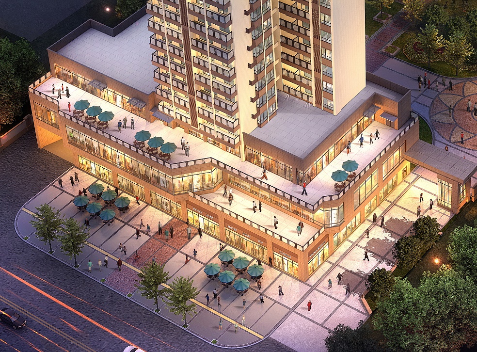 商業(yè)采用退臺(tái)式設(shè)計(jì),一層、二層面積規(guī)劃合理,層高5.4米,三層奢享超寬退臺(tái).適合餐飲、便利購物、休閑茶樓、辦公.
