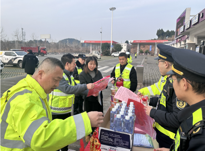 春運(yùn)大幕正式開(kāi)啟!為切實(shí)做好2025年春運(yùn)高速公路運(yùn)營(yíng)安全管理工作,精準(zhǔn)開(kāi)展宣傳引導(dǎo)提示服務(wù),針對(duì)今年春運(yùn)期間全社會(huì)跨區(qū)域人員流動(dòng)量有望創(chuàng)歷史新高的形勢(shì),高開(kāi)司及早研判部署春運(yùn)安全工作,1月14日上午,高開(kāi)司聯(lián)勤省高速公安二分局六大隊(duì)、省交通執(zhí)法十五大隊(duì)等協(xié)作單位開(kāi)展春運(yùn)道路交通“平安春運(yùn)·便捷春運(yùn)·溫馨春運(yùn)”主題宣傳活動(dòng)。