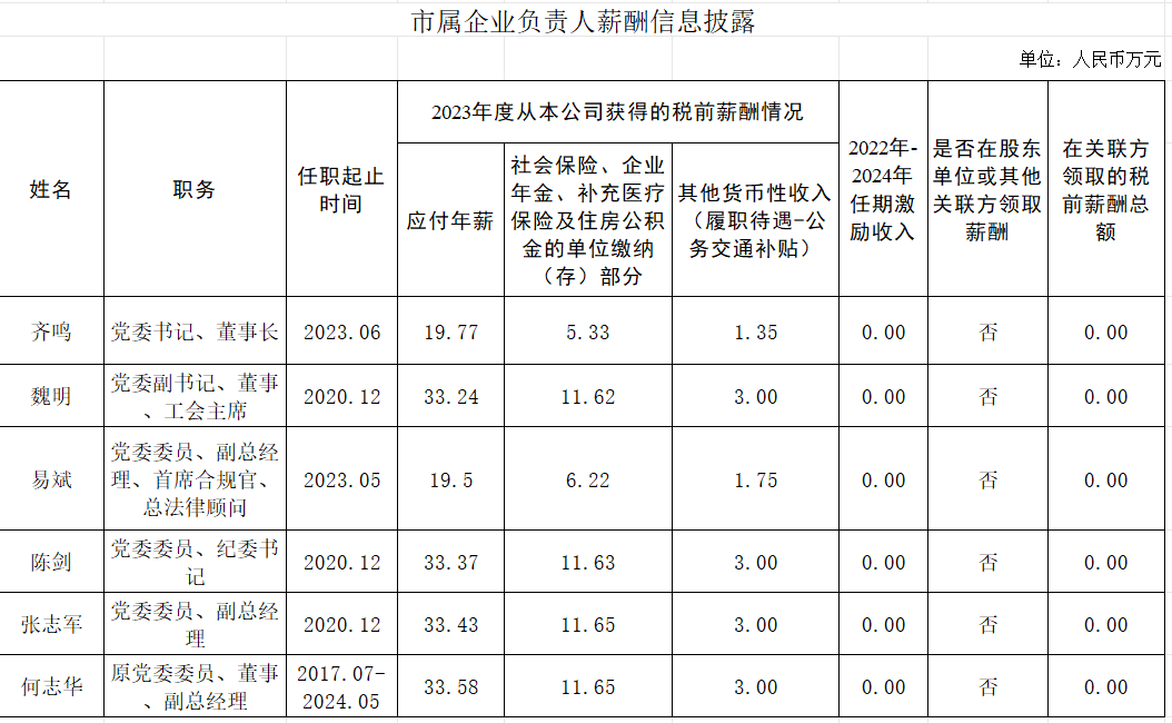 市屬企業(yè)負(fù)責(zé)人薪酬信息披露