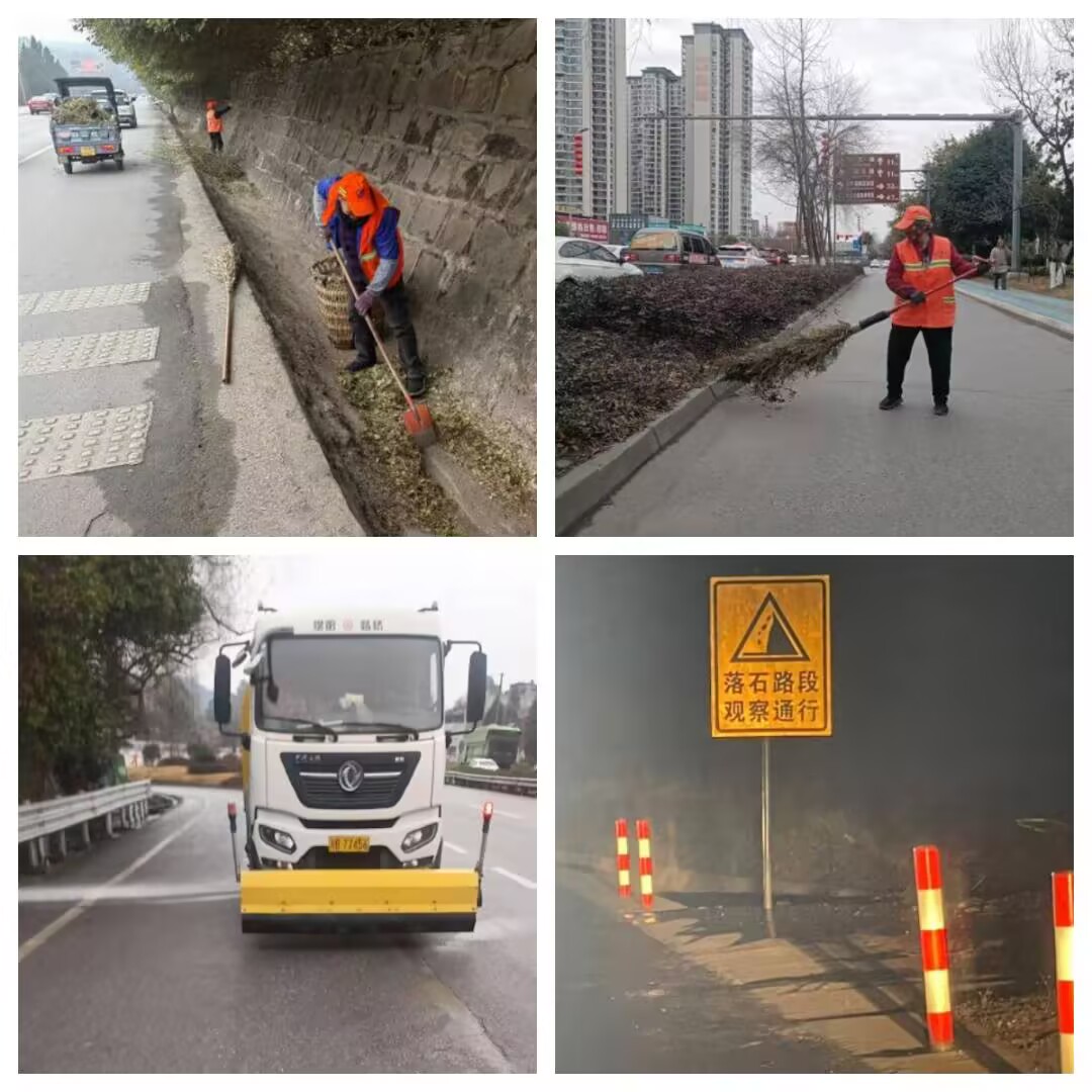春節(jié)期間,路橋公司派出160余名一線養(yǎng)護工人、20余名機械作業(yè)人員,對管養(yǎng)354公里道路進行日常清掃保潔工作;安排專人對各線路橋梁、涵洞、隧道、路基、路面、高邊坡和交安設(shè)施等部位進行安全隱患排查,及時處置公路安全隱患;設(shè)置6名觀察哨,對51處地災(zāi)易發(fā)點進行值守;加密夜間巡查頻次,筑牢交通安全防線,提升道路安全水平,為廣大人民群眾的平安出行保駕護航。