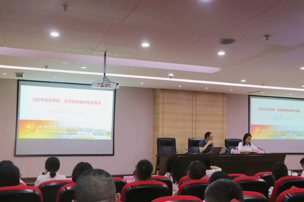 隨后,市委黨校經(jīng)濟(jì)與發(fā)展教研室主任、副教授林勁松以《習(xí)近平經(jīng)濟(jì)思想:高質(zhì)量發(fā)展的根本遵遁》開展專題培訓(xùn),從高質(zhì)量發(fā)展的基本邏輯、科學(xué)內(nèi)涵和實(shí)踐路徑等3個(gè)方面,對(duì)習(xí)近平經(jīng)濟(jì)思想進(jìn)行了詳細(xì)的闡釋和解讀。報(bào)告思想深邃、邏輯清晰、語言凝練,深入淺出、圖文并茂,讓廣大學(xué)員們真切感受到了習(xí)近平經(jīng)濟(jì)思想的真理力量。