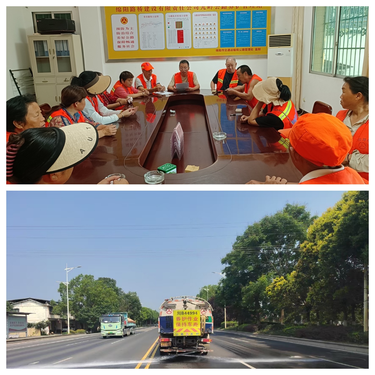 針對高溫天氣道路管養(yǎng)工作,路橋集團(tuán)一是科學(xué)調(diào)整作業(yè)時間。嚴(yán)格執(zhí)行“抓兩頭、歇中間”錯峰工作制度,將養(yǎng)護(hù)作業(yè)集中在清晨7:00-10:00、下午16:00-18:30,避開高溫時段,最大限度減少養(yǎng)護(hù)工人中暑風(fēng)險。同時,安排專人監(jiān)測氣溫變化,日最高氣溫≥40℃時,停止戶外作業(yè)。二是加大機(jī)械化作業(yè)力度。為有效應(yīng)對本輪高溫天氣和臭氧污染,嚴(yán)格按照《綿陽市普通國省干線公路日常養(yǎng)護(hù)領(lǐng)域揚(yáng)塵防控工作專項方案(第七版)》要求,加密管養(yǎng)道路灑水降塵頻次,每天出動10輛洗掃車、9輛灑水車、2輛掃地車,為道路消暑降溫。三是嚴(yán)格落實(shí)防暑保障措施。公司為190名道路養(yǎng)護(hù)工人配備手套、防曬面罩等防護(hù)裝備,發(fā)放藿香正氣液、風(fēng)油精、夏桑菊顆粒等防暑物資,強(qiáng)化防暑保障,落實(shí)人文關(guān)懷。四是加強(qiáng)一線安全教育。定期開展高溫作業(yè)安全培訓(xùn),重點(diǎn)強(qiáng)調(diào)防暑、防灼傷、防車輛事故等注意事項,切實(shí)提升養(yǎng)護(hù)工人高溫作業(yè)安全意識和防護(hù)措施。規(guī)范現(xiàn)場管理,作業(yè)區(qū)域嚴(yán)格設(shè)置警示標(biāo)志,配備反光錐桶、警示燈,并安排專人值班值守,確保施工路段作業(yè)安全。