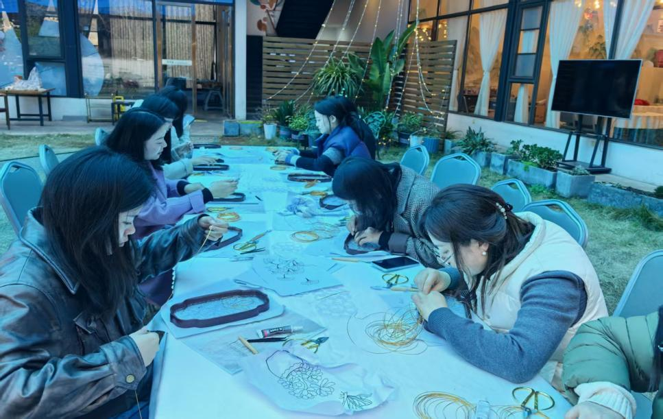 活動(dòng)現(xiàn)場,手作老師首先對掐絲琺瑯工藝進(jìn)行了簡要講解,并細(xì)致演示了關(guān)鍵步驟。在老師的指導(dǎo)下,大家全神貫注地投入到創(chuàng)作中去,小心翼翼地掐絲、點(diǎn)藍(lán),將一根根細(xì)銅絲彎曲成精美的圖案,再填入五彩斑斕的顏料,每一步都凝聚著專注與耐心。經(jīng)過一番精心制作,一件件流光溢彩的成品驚艷亮相。這些獨(dú)一無二的作品,不僅浸潤著女職工們的匠心巧思,更承載著對美好生活的無限熱愛。