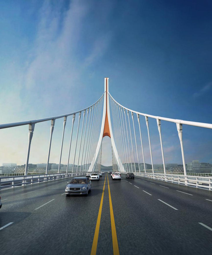 綿陽市青石路涪江大橋是科技城新區(qū)北翼橫跨涪江、聯(lián)系涪城青義片區(qū)、游仙石馬片區(qū)的重要橋梁。橋梁北距綿廣高速公路大橋1.9公里,南距二環(huán)路跨江橋1.5公里,向東連接綿江路、向西連接科學(xué)城大道。橋梁紅線寬度為40米,主橋采用雙向六車道,雙側(cè)設(shè)置非機(jī)動(dòng)車道、人行道。